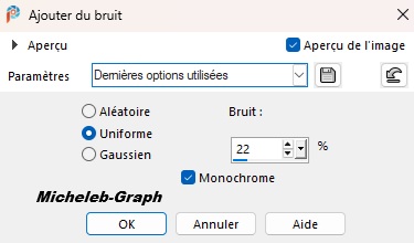 Réglage - ajouter/supprimer du bruit - ajout du bruit
