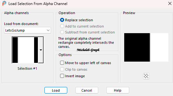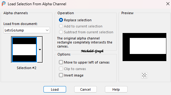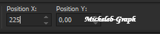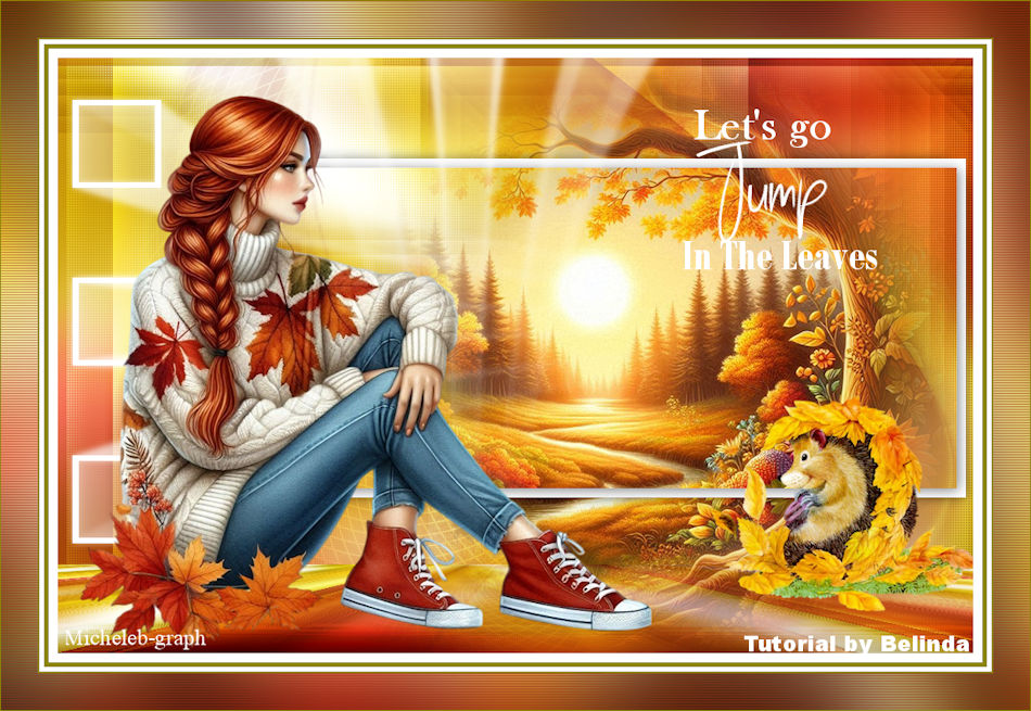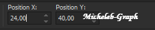 4 Filters - Toadies - What are You ? ![]() Layers - duplicate 5 Image - free rotation 90°, on the right ![]() 6 Effects - Image effects - seamless mosaic: Lado a lado ![]() Blend mode on the layer: Overlay 7 Layers - merge - merge visible Filters - L& K's: Katharina ![]() 8 Open and copy Deco-1LetsGoJump Paste a new layer Select tool (K) Pos X: 30 - Pos Y: 80 9 Filters - MuRa's Meister: Pole Transform ![]() Blend Mode of the layer: Multiply 10 Selections - load/Save a - selection from an alpha channel - load the selection #1 ![]() Press the "supprim" key on your keyboard or Edition - cut Selections - select none 11 Open and copy the layer Deco-2letsgojump Paste as new layer Select tool (K) Pos X: 225 - Pos Y: 0 12 Open and copy the layer Misted-LetsgoJump Paste as new layer Objects - Align - Right Adjust - sharpen - sharpness 13 Layers - new layer Selections - Load/Save a selection - load selection from a channel alpha - load selection #2 ![]() 14 Activate your paint bucket tool - fill the color layer 3 #ffffff Selections - modify - contract ![]() Press the "delete" key on your keyboard or Edit - cut Keep the selection 15 Activate Raster 3 (Landscape) Effects - 3D effects - Drop Shadow ![]() Repeat the effect with negatives values ![]() 16 Activate Raster 4 Effects - 3D effects - Drop Shadow ![]() 17 Close Raster 2 - 3 and 4 ![]() Layers - merge - merge visible Layers - duplicate 18 Filters - MuRa's Meister: Perspective Tiling ![]() Open the layers closed 19 Activate the layer by top of the pile Open and copy the layer Deco-3LetsgoJump Paste as new layer Select tool (K) Pos X: 9 - PosY: -149 20 Open and copy your tube primary folder Resize if necessary Paste as new layer Select tool (K) Pos X: 24 - Pos Y: 40 21 Open and copy the layer leaves-letsgoJump Paste as new layer Image - resize this layer to 85% Select tool (K) Pos X: 360 - Pos Y: 430 22 Open and copy the layer Squirrel-LetsgoJump Paste as new layer Image - resize this layer to 60% Select tool (K) Pos X: 709 - Pos Y: 367 23 Open and copy the layer WD-LetsgoJump Paste as new layer Select tool (K) Pos X: 683 - Pos Y: 56 24 Edit - Copy special - copy with merge Image - add borders 10 px - color 3 #ffffff 5 px - color 2 #8d8600 5 px - color 3 #ffffff 2 px - color 2 #8d8600 40 px - color 3 #ffffff 25 Magic wand tool - zero tolerance - select the border Paste in selection Adjust - blur - Gaussian blur: previous settings 26 Filters - Graphics Plus: Cross Shadow ![]() 27 Effects - effects of textures - blinds ![]() Adjust - sharpen - sharpness Selections - select none 28 Add your signature on a new layer Add Belinda’s signature Add my signature Translation Micheleb-Graph Image - add borders 1 px - color #8d8600 File - save in Jpeg format ![]() Your creation is complete You can send it to me by email ![]() ![]() My version ![]() Version of my tester Irene ![]() Gallery Index ![]() Ce(tte) œuvre est mise à disposition selon les termes de la Licence Creative Commons Attribution - Pas d’Utilisation Commerciale - Pas de Modification 3.0 France. |