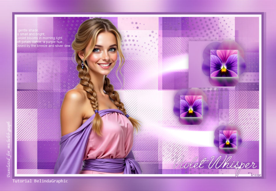 ![]() I thank Belinda for allowing me to translate its tutorials into English Tutorial created by Belinda All copyright ![]() ![]() Material ![]() Filters Mehdi - WabyLab 1.1 / Sorting Tiles AFS Import - Sq Border2 AAA Frames - Foto Frames Carolaine & Sensibility - CS Texture Colors ![]() ![]() 1 Open a new document from 1000 x 650 px transparent Filters - Mehdi - Wavy Lab 1.1 ![]() 2 Adjust - Add/Remove - setting Noise - Add noise ![]() 3 Filters - Mehdi - Sorting Tiles ![]() Layers - duplicate 4 Image - resize this 83% tracing ![]() 5 Filters - AFS Import - Sq Border 2 ![]() 6 Effects - Image effects - Seamless Tiling ![]() Layer blend mode: Hard Light 7 Open and copy Deco1-Purple layer Paste as new layer It is in place Effects - Image Effects - Seamless Tiling - Previous settings Adjust - Sharpness - Sharpen more Layer opacity: 81% 8 Open and copy Deco2-Purple Layer Paste as new layer He is placed Layers - merge all (flatten) 9 Selection tool (S) - custom selection - enter these numbers ![]() Selections - transform the layer selection 10 Adjust - blur - gaussian blur ![]() 11 Open and copy the misted-violet layer Paste in the selection 12 Filters - AAA Frames - Foto Frames ![]() Select tool (K) Pos X: 759 - Pos Y: 96 13 Layers - duplicate Image - resize this layer to 80% Select tool (K) Pos X: 642 - Pos Y: 293 Layers - duplicate - the resized layer Image - resize this layer to 80% Select tool (K) Pos X: 810 - Pos y: 444 Selections - select none 14 Close the layer at the bottom of the stack Layers - merge visible layers Effects - 3D effects - Drop Shadow ![]() Activate and open the background layer 15 Open and copy Deco3-Purple Layer Paste as new layer Select tool (K) Pos X: 405 - Pos Y: 146 16 Open and copy Text1-Purple layer Paste as new layer Place the text in the top left Select tool (K) Effects - 3D effects - Drop Shadow - Settings Previous Repeat the drop shadow a second time 17 Open and copy the layer woman10bg-Purple Paste as new layer Image - resize this layer to 97% Select tool (K) Pos X: 53 - PosY: 7 18 Effects - 3D effects - drop shadow - settings previous Editing - special copy - copy with merge 19 Image - add borders 10 px - color 3 #ffffff 10 px - color 1 #4e37ac 50 px - color 2 #e6e7ec 20 Magic wand tool - zero tolerance Select the border Past in selection Adjust - blur - Gaussian Blur ![]() 21 Filters - Carolaine & Sensibility - CS Texture ![]() Selections - select none 22 Open and copy Text2-Purple layer Paste as new layer Position as on the template 23 Add your signature Add Belinda's signature Add my signature Translation Micheleb-Graph Layers - Merge - Merge all (Flatten) Image - resize to 950 px wide File - Save as Jpg ![]() Your creation is complete You can send it to me by email ![]() ![]() My version ![]() ![]() Version of my tester Irene ![]() Gallery Index ![]() Ce(tte) œuvre est mise à disposition selon les termes de la Licence Creative Commons Attribution - Pas d’Utilisation Commerciale - Pas de Modification 3.0 France. |