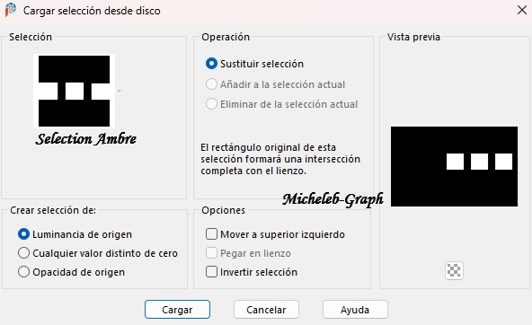 Abrir y copiar el tubo decorativo 1 9 Selección/Cargar una selección desde el disco/Selección_Ambre
