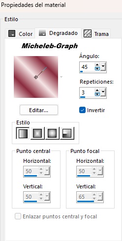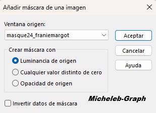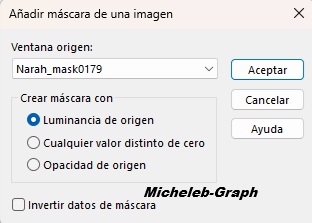 ![]() ![]() Tutorial escrito el 17 de febrero de 2026 ![]() Este tutorial es una creación personal. Cualquier parecido es pura coincidencia. Está estrictamente prohibido copiar este tutorial, distribuirlo en la red Está prohibido modificar, cambiar el nombre, quitar la marca de agua y alterar los tubos Está prohibido compartirlos en grupos u ofrecerlos en su sitio web, blog o foro Los tubos se ofrecen para uso personal Si quieres utilizarlos para tus tutoriales y adjuntarlos en el material, tendrás que pedir permiso a los autores Gracias a Renée por permitirle usar sus filtros ![]() Matériel ![]() Filtres Utilisés FM Tile Tools - Emboss at Alpha Alien Skin - Eye Candy 5 - Glass Unlimited 2.0 - Buttons & Frames No dude en cambiar el modo de mezcla de las capas según sus tubos y colores Dependiendo de la versión de PSP que utilices, puedes obtener diferentes resultados ![]() Empezamos 1 Abrir una capa transparente de 900/570 2 Preparar un degradador lineal/inverso marcado Color 1 primer plano - Color 2 fondo ![]() 3 Rellenar con el degradado 4 Capa - Duplicar 5 Imagen - Espejo horizontal 6 Poner la opacidad de la capa a 50 ![]() 7 Fusionarse con la capa inferior 8 Ajuste - Desenfoque gaussiano a 20 ![]() 9 Abrir la capa Narah_mask0179 - Minimizarla 10 Capa - Nueva capa rasterizada 11 Verter el color blanco 12 Capa - Cargar para guardar una nueva capa de máscara a partir de una imagen ' Invertir los datos de la máscara no seleccionada ![]() 13 Fusionar el grupo 14 Efecto de imagen - Mosaico sin unión - Repetición diagonal ![]() 15 Acentuar el efecto de borde 16 Ajuste - Añadir ruido - Uniforme 45 ![]() 17 Efecto de borde - Acentuar 18 Abrir la capa, la máscara 24 de Franiemargot 19 Capa - Nueva capa rasterizada 20 Verter el color blanco #ffffff 21 Capa - Cargar para guardar una nueva capa de máscara a partir de una imagen 22 Invertir los datos de la máscara no seleccionada ![]() 23 Fusionar el grupo 24 Filtro Mara’s Seamless - Emboss at Alpha por defecto ![]() 25 Efecto 3D - Sombra puesta - 1/1/50/10 negro