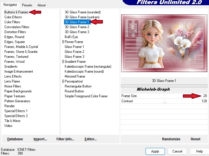 ![]() 53 No seleccionar nada 54 Efecto 3D - Sombra a la vista: 2/2/50/20 negro ![]() 55 Abrir el tubo Chica 56 Copiar - Pegar como nueva capa 57 Cambiar tamaño al 67% 58 Imagen - Espejo - Espejo horizontal 59 Posición ![]() 60 Capa - Duplicar 61 En la capa inferior 62 Ajuste de desenfoque gaussiano a 15 63 Modo de capa - Multiplicador - Opacidad a 100 ![]() 64 Añadir un borde simétrico de 2 colores blancos 65 Añadir un borde simétrico de 2 colores 1 66 Seleccionar todo 67 Añadir un borde de 10 colores blanco 68 Selección - invertir 69 Pagar la indemnización por despido 70 Ajuste - Añadir ruido - Uniforme 45 ![]() 71 Seleccionar todo 72 Añadir un borde simétrico de 35 Blanche 73 Selección - Invertir 74 Pagar el Degradante de partida (Lineal) 75 Fitre Unlimited 2.3 - Boutton&Frames ![]() 76 No seleccionar nada 77 Abrir el texto Eglantine 78 posición ![]() 79 Efecto 3D- Sombra alcance: 3/3/60/2 color 1 ![]() 80 Firmar 81 Capas - fusión - fusionar todo (Aplatir) 82 Cambiar el tamaño a 950/636 Guardar como JPG Mi versión personal ![]() Gracias a Cat Dana por sus éxitos niña y flores ![]() Me contacte ![]() Index ![]() Ce(tte) œuvre est mise à disposition selon les termes de la Licence Creative Commons Attribution - Pas d’Utilisation Commerciale - Pas de Modification 3.0 France. |