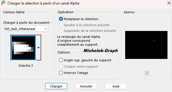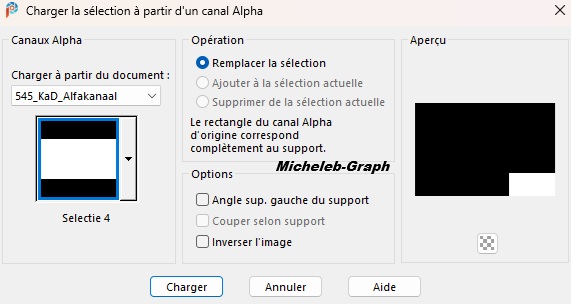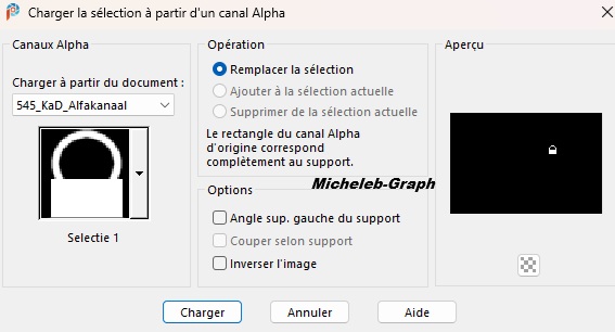 Sélections - charger à partir du canal alpha - Sélection 1