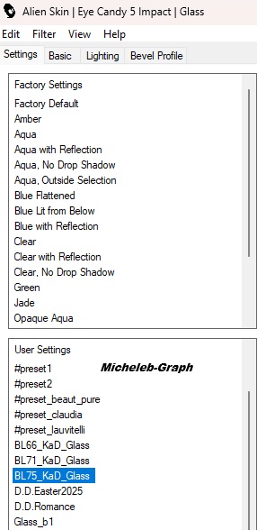 Choisir le préréglage à gauche: BL75_KaD_Glass