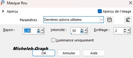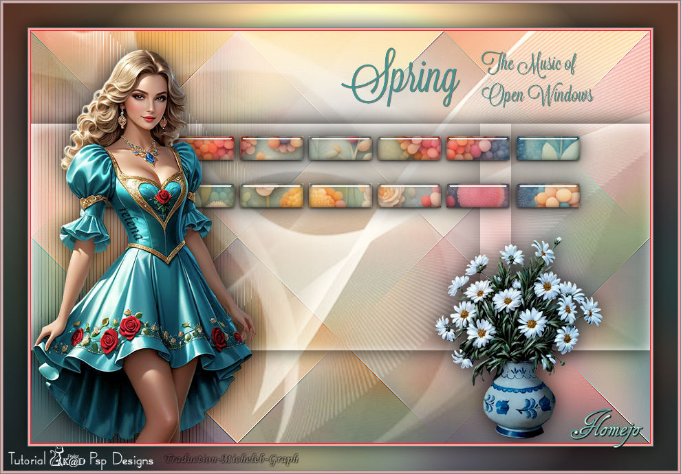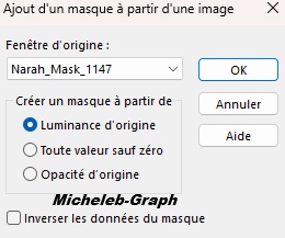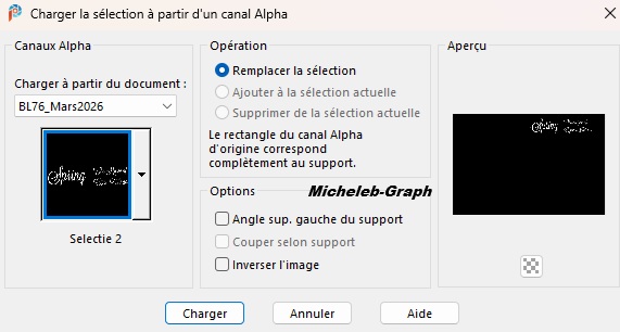 ![]() Cette leçon à été créée avec Psp2018 et traduite avec Psp 2020 Mais elle peut être réalisée avec toutes les autres versions de Psp. ![]() Le © de cette leçon est celui de Kad's Le © de la traduction est le mien Les leçons comme les traductions ne peuvent PAS être copiées ou liées sur d'autres sites Web et/ou forum, Sans notre consentement à Kad's ou moi-même. Toute ressemblance avec d'autres leçons existantes sur le Net serait pure coïncidence Svp, laissez intacts les noms et filigranes des tubes et d'autres matériaux Nous remercions tout le monde de nous permettre d'utiliser leurs tubes et leurs matériaux Si vous publiez votre version dans un blog, sur Facebook, dans un groupe de partage ou sur un site Web, Veuillez inclure le lien vers la leçon et la traduction. Merci par avance Afin de ne pas gâcher l'effet de surprise pour les autres, Veuillez ne pas rendre votre création publique avant la date de fin Dans ce cas, il s'agit du 31/03/2026 Soumettez votre création au plus tard le 30/03 Merci ! Préparatifs généraux Installez d'abord les filtres que vous n'aviez pas avant d'ouvrir votre Psp. Ouvrez vos tubes, dupliquez les et fermez les originaux. N'oubliez pas de supprimez les filigranes sur les COPIES; Matériel ![]() (*) si vous reconnaissez un tube qui vous est propre, veuillez me contactez afin que je puisse mentionner votre nom ou - si vous le souhaitez - retirer le tube. THÉME DU PRINTEMPS Trouve un tube d'une femme et un tube déco (vase avec des fleurs) J'ai utilisé un tube femme de Kamil et un tube fleurs d'Elaine 1/ BL76_KaD_Element1 Contexte 1/ KamilTube-5529-BG Sélections Ouvrir dans Psp - dupliquer et fermez l'original 1/ - BL76_KaD_Alfakanaal Masques Ouvrir dans Psp et réduire 1/ Narah_Mask_1147 ***** Filtres (-) Importez ces filtres dans Unlimited 2.0 pour obtenir le même résultat 1/ Mehdi - Sorting Tiles 2/ Alien Skin - Eye Candy 5 - Glass 3/ Tramages - Tow the line 4/ Unlimited 2.0 - Filter Factory Gallery A - Spotlight (-) Commençons et amusez-vous! N'oubliez pas de sauvegarder régulièrement votre travail, une fermeture intempestive de Psp est toujours à prévoir. Palette de couleurs Si vous travaillez avec vos propres couleurs, créez votre propre palette avec le Canal Alpha "Alpha_Kleurenpallet-6" fournit dans le matériel, il vous permettra de basculer plus facilement entre vos couleurs. Premier plan - couleur 1 - couleur claire de votre tube Arrière-plan - couleur 2 - autre couleur claire de votre tube Couleur 3 - Variante sombre de la couleur 2 Couleur 4 - Variante sombre de la couleur 1 Couleur 5 - #ffffff Couleur 6 - #000000 1 Ouvrir BL76_KaD_Alfakanaal Fenêtre - dupliquer Fermez l'original, nous travaillerons sur la copie 2 Sélections - sélectionner tout Ouvrir et copier KamilTube-5529-BG Coller dans la sélection *Optionnellement ajuster la couleur avec Adjust - Variations ou remplir le Raster 1 avec la couleur 1 ou 2 " et coller BG dans la sélection sur un nouveau calque, Mode de fusion - recouvrement (ou autre) Calques - fusion - fusionner calque du dessous Sélections - ne rien sélectionner Réglage - flou - flou gaussien à 30 3 Calques - dupliquer (Copie Raster 1) Filtres - Mehdi - Sorting Tiles ![]() 4 Effets - Effets de bord - accentuer davantage 5 Ouvrir et copier BL76_KaD_Element1 Coller comme nouveau calque (Raster 2) 6 Ouvrir et copier KamilTube-5529-BG Coller comme nouveau calque (Raster 3) *Optionnellement ajuster la couleur avec Adjust - Variations ou remplir le Raster 1 avec la couleur 1 ou 2 " et coller BG dans la sélection sur un nouveau calque, Mode de fusion - recouvrement (ou autre) Calques - fusion - fusionner calque du dessous Images - redimensionner: 2x80% *Tous les calques NON cochés* Positionner (K sur votre clavier) ![]() Appuyez sur "M" pour désactiver 7 Sélections - charger à partir du canal alpha - Sélection 1 ![]() Sélections - inverser Appuyez sur la touche "Suppr" de votre clavier 8 Sélections - inverser Filtres - Alien Skin - Eye Candy 5 - Impact - Glass - Clear A la base, ajustez la couleur du verre a votre couleur 2 ![]() 9 Effets - 3D - ombre portée - noire ![]() Sélections - ne rien sélectionner 10 Définir la couleur du premier plan sur votre couleur 5 Calques - nouveau calque Remplir avec la couleur de premier plan Ouvrir et réduire le masque Narah_mask_1147 Calques - nouveau calque de masque - à partir d'une image Charger le masque Narah_mask_1147 ![]() Calques - fusion - fusionner le groupe Mode de fusion - Ecran ![]() 11 Calques - réorganiser - déplacer 2x vers le bas 12 Activer le calque supérieur (Raster 3) Définir la couleur d'arrière-plan sur votre couleur 3 Calques - nouveau calque (Raster 4) Sélections - charger à partir du canal alpha - sélection 2 ![]() Remplir la sélection avec la couleur d'arrière-plan Sélections - ne rien sélectionner 13 Calques - dupliquer Calques - fusion - fusionner calque du dessous Effets - 3D - ombre portée - noire ![]() 14 Ouvrir et copier votre tube féminin Coller comme nouveau calque (Raster 5) Redimensionner si nécessaire Déplacez sur la gauche, légèrement hors du bord Ou positionnez ![]() 15 Calques - dupliquer (Copie Raster 5) Réglage - flou - flou gaussien à 30 Filtres - Tramages - Tow the Line ![]() 16 Calques - dupliqer Image - miroir - miroir vertical Calques - fusion - fusionner calque du dessous (Copie Raster 5) Mode de fusion: Recouvrement 17 Calques - réorganiser - déplacer 4x vers le bas 18 Activer le calque supérieur (Raster 5) Réglage - netteté - masque flou ![]() Effets - 3D - ombre portée - noire ![]() 19 Ouvrir et copier votre tube déco Coller comme nouveau calque (Raster 6) Redimensionner si nécessaire Déplacez vers la droite et en bas, légèrement hors du bord Ou positionner ![]() Effets - 3D - ombre portée - noire ![]() Résultat ![]() 20 Fermez le Raster 1 (cliquez sur l'oeil) Activer le calque juste au-dessus (Copie Raster 1) Calques - fusion - fusionner calques visib