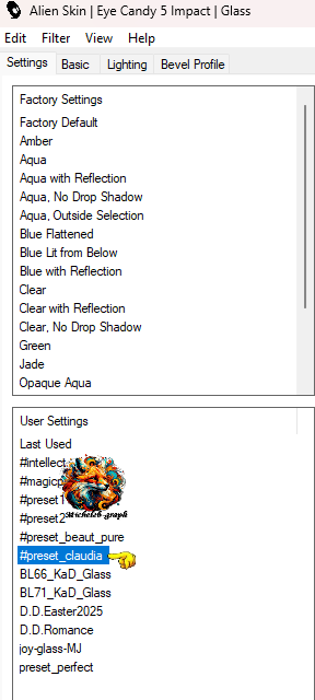 Apply the preset_claudia