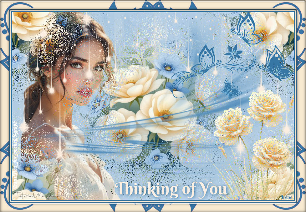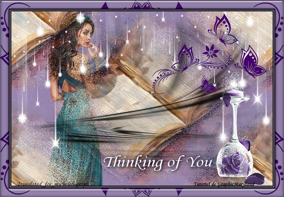 ![]() Thank you to all the creators of hits who through their work allow us our magnificent creations Do not modify the tube, do not remove the watermark from the creator of the tube, do not pass it off as yours Thank you for the material and the tube. ![]() Material ![]() Filters Alien Skin - Eye Candy 5 - Impact - Glass - CLEAR Colors Foreground: #9581ad Background: #000000 ![]() 1 Open a new transparent image of 900 x 600 px Fill with foreground color Open and copy the misted book Paste a new layer Image - resize to 80% Effects - Image effects - Seamless Tiling ![]() Blend Mode: dissolve ![]() 2 Open and copy the woman tube Paste as new layer Image - resize to 70% Slightly move the woman to the left Layers - rearrange - move down 3 Activate Raster Layer 2 Layers - new layer Fill with background color: #000000 Open and minimize the deco 70 mask from Silvie Layers - new mask layer - from apply this mask ![]() Layers - merge - merge group 4 Open and copy MVD Element Lavander_043 Paste as new layer Image - resize to 80% Position at the top right Open and copy MVD Element Lavander_074 Image - resize to 80% Paste as new layer Position at the bottom right Layers - duplicate Layers - merge - merge down Blend mode: Dissolve Position at the bottom right ![]() 5 Layers - new layer Fill with white color #ffffff Open and minimize mask Narah_mask1842 Layers - new mask layer - from apply Narah layer ![]() Layers - merge - merge group Layers - rearrange - Move 2 times down 6 Activate the top layer (Raster 5) Write with the font of your choice "Thinking of you" or copy-paste the text is in material Position as desired Effects - 3D - Drop Shadow V&H: 2 - 100 - 15 - #000000 7 Image - add borders 3 px - #000000 3 px - #9581ad 3 px - #000000 Selections - select all Image - add borders 30 px - #9581ad Selections - invert Keep selection Layers - new layer Open and copy MVD Lavander_043 Paste into selection Selections - select none Layers - duplicate Image - mirror - horizontal Layers - duplicate Image - mirror - vertical Layers - duplicate Image - mirror - horizontal 8 Layers - new layer Selections - select all Selections - modify - contract: 30 px Selections - invert Filters - Alien Skin - Eye Candy5 - Impact - Glass - CLEAR Selections - select none 9 Add you signature Add Maryland signature and Mine Translation Micheleb-Graph 10 Layers - merge - merge all Save as. Jpg ![]() My version ![]() ![]() For drama fans, you will have recognized Yu Menglong (Alan Yu) dcd last month... Image taken on Pinterest - the flowers come from Diana’s share. Version of my tester Irene ![]() ![]() Your picture is finished You can email it to me if you want it whish ![]() Gallery Index ![]() Ce(tte) œuvre est mise à disposition selon les termes de la Licence Creative Commons Attribution - Pas d’Utilisation Commerciale - Pas de Modification 3.0 France. |