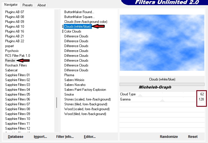 Filtres - Unlimited 2.0 - Render - Clouds (blanc-bleu) : 62 -