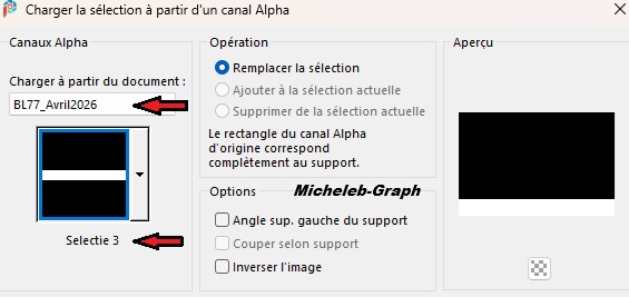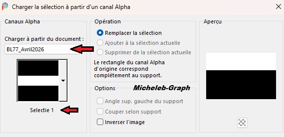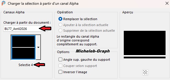 Sélections - charger à partir du Canal Alpha - Sélection 1