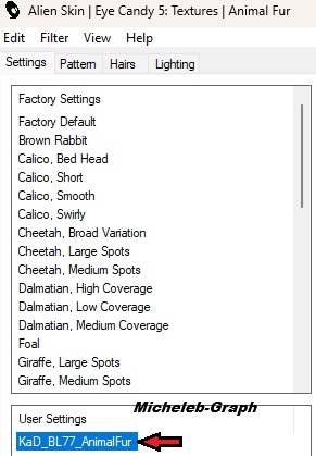 choisissez le préréglage KaD_BL77_AnimalFur prédéfini à gauche