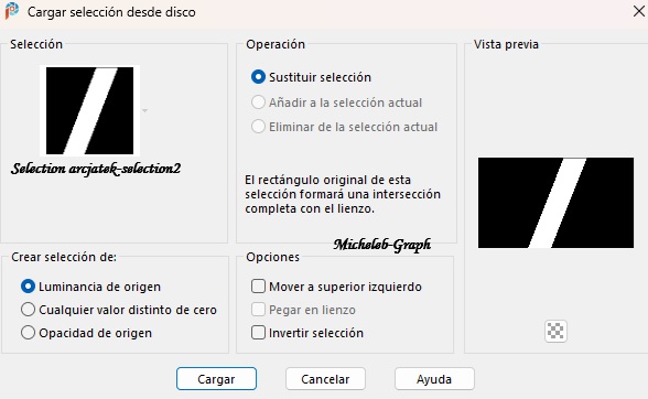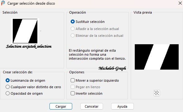 Selecciones - cargar desde el disco - aplicar la selección arjáték-selection
