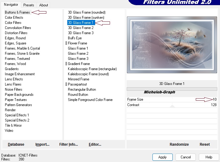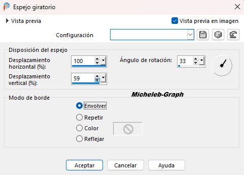 ![]() Gracias Mary por permitirme traducir tus tutorial al español ![]() Material Enlace al sitio tubes de Mary bajo su bandera ![]() Filtros Unlimited 2.0 - Buttons & Frames Simple - Pizza Slice Mirror Filtros en la página siguiente ![]() ![]() Color Primer plano: #ffffff Fondo: #6c806a ![]() ![]() 1 Abrir una nueva imagen transparente de 850 x 500 px 2 Hacer un degradado radial de la siguiente manera ![]() 3 Rellenar su capa con este degradado Filtros - Simple - Pizza Slice Mirror Efectos - efectos de imagen - mosaico sin juntas - como sigue ![]() 4 Efectos - efectos de reflexión - espejo giratorio - como sigue ![]() Ajuste - nitidez - nitidez 5 Abrir y copiar fagyos-dekor-mts2025 Pegar como una nueva capa Abrir y copiar 3012-mts-2025 Pegar como una nueva capa Posicionar como en la imagen de abajo ![]() Tu paleta de capas es así ![]() 6 Abrir y copiar fagyos-dekor2-mts2025 Pegar como nueva capa Abrir y copiar fagyos-szöveg-mts-2025 Pegar como nueva capa Colocar a la izquierda (ver imagen final) 7 Abrir y copiar el tubo 243-maryts (aves) Pegar como nueva capa Colocar en la parte superior derecha (ver imagen final) 8 Imagen - añadir bordes 3 px - #ffffff 3 px - #6c809a 15 px - #ffffff 3 px - 6c809a 9 Poner el tubo de paisaje en patrón ![]() Selecciones - seleccionar todo Imagen - añadir bordes 30 px - #ffffff Selecciones - invertir Rellenar con el motivo Repetir 2 o 3 veces 10 Mantener la selección Ajuste - desenfoque - desenfoque gaussiano - radio a 54 ![]() Seleccionar siempre Filtros - Unlimited 2.0 - Buttons & Frames ![]() Selecciones - anular selección 11 Abrir y copiar el tubo 34 Pegar como nueva capa Cambiar el tamaño si es necesario Colóquelo como en la imagen final Efectos - 3D - sombra extendida 1 - -1 - 51 - 59 - #081a30 ![]() 12 Añade tu firma Añadir la firma de Mary Añadir mi firma Traducción Micheleb-Graph Capas - fusión - fusionar todo (aplanar) Guardar como. Jpg ![]() Enviame tu creación por e-mail ![]() ![]() Mi propria version ![]() Galería Index ![]() Ce(tte) œuvre est mise à disposition selon les termes de la Licence Creative Commons Attribution - Pas d’Utilisation Commerciale - Pas de Modification 3.0 France. |