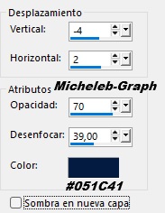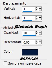 Efectos 3D > Sombra de alcance: 1, 1, 70, 0, color #051c41