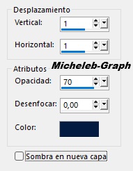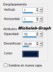 Efectos 3D > Sombra de alcance: 1, 1, 70, 30, color azul