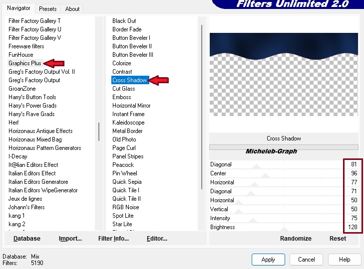 Filtros - Unlimited 2.0 - Graphics Plus - Cross Shadow